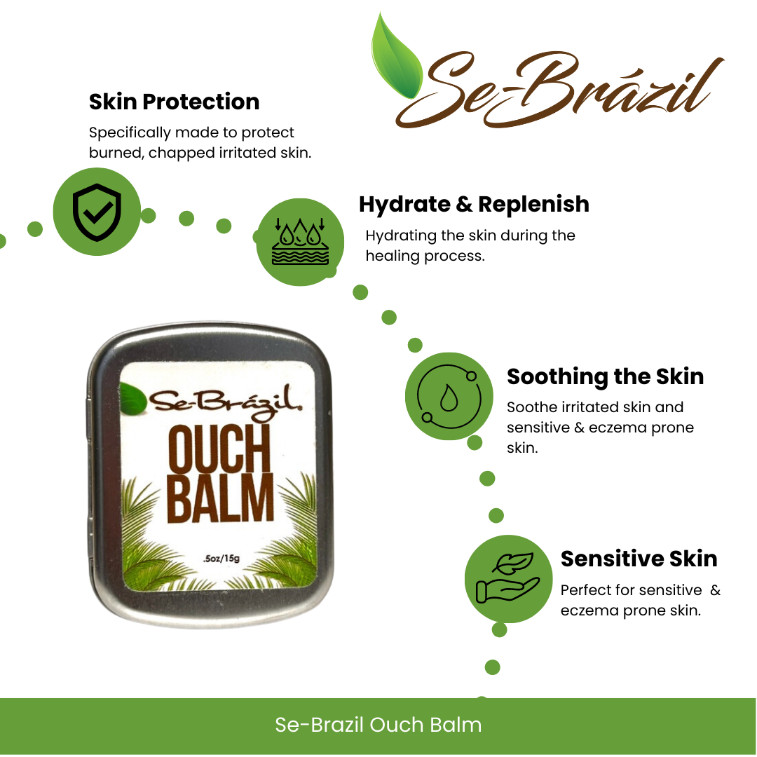 Se-Brazil Ouch Balm is an all-natural thick balm for irritated, bruised, cracked and burned skin. Se-Brazil Ouch Balm can also be used on chapped lips, sunburns and for diaper rash on babies.