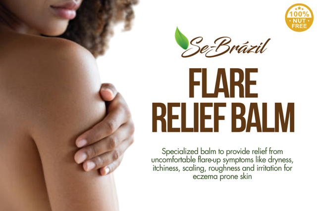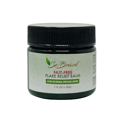 Se-Brazil Flare Balm is a specialized tree nut-free balm to provide relief from uncomfortable flare-up symptoms like dryness, itchiness, scaling, roughness and irritation for eczema prone skin.